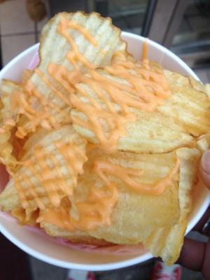 ここは結構人気店で、カルビーのアンテナショップとでも言いましょうか、普通のお店では売ってないお菓子や、揚げたてのポテチが食べられるという素敵なお店。